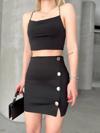 KAZAX Likralı Gabardin Dört Düğmeli Etek, şıklığı ve rahatlığı bir arada sunar. Bu etek, zarif görünümüyle günlük kullanıma ve özel günlerde de tercih edilebilir.