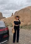 Madonna yaka bol paça pantolonlu takım, şık ve modern bir görünüm sunar. Hem günlük kullanıma hem de özel günlerde tercih edebileceğiniz bu takım, tarzınıza şıklık katacak.