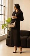 Güncel Trend: Takım, moda dünyasının son trendlerinden olan yırtmaçlı elbise ve triko konforunu birleştiriyor.