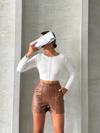 Bu parçalı cepli deri şort ile tarzınızı konuşturun, kendinizi özgür hissedin!