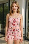 ?? Pembe Kiraz Desenli Kurdelalı Askılı Şortlu Pijama Takımı – Tatlılığın Yeni Tanımı!
