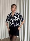 KAZAX Siyah Beyaz Baskılı Crop Gömlek ile tarzınızı konuşturun!