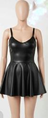Bu elbise sadece bir kıyafet değil, bir duruşun ifadesidir. Işıltılı siyah suni derinin baştan çıkarıcı dokusu ve korse etkili büstiyer tasarımıyla girdiğiniz her ortamda tüm bakışları üzerinize çekeceksiniz.