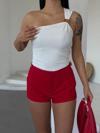 Bu sezonun trend parçası olan tek omuzlu bluzlar arasından sıyrılan bu bluz, şık ve zarif görünümüyle dikkat çekiyor. Otoman kumaştan üretilmiş olup, içindeki polyester malzeme sayesinde kullanımı oldukça rahat. Gold metal detaylarıyla da şıklığına şıklık katan bu bluz ile farkınızı ortaya koyabilirsiniz.