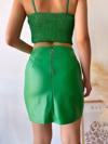 Şıklık ve modern tasarımı bir arada sunan Tek Yırtmaçlı Arkadan Fermuarlı Deri Etek Yeşil S24475, gardırobunuzun vazgeçilmezi olmaya aday! Ürün detayları: