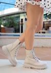 Biçomi Toan Bej Cilt Bağcıklı Bot