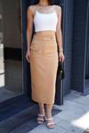 Ersefa Moda Regular Düz Desen Günlük Midi Boy Dokuma Etek