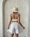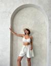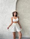 Volanlı keten şort bej s255058, şıklığı ve rahatlığı bir arada sunan bir parçadır. Keten kumaştan üretilmiş olan bu şort, yaz aylarında serin ve konforlu bir kullanım sağlar.