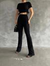 Kadın Paçası Yırtmaç Detaylı Taşlı Bel Bağlamalı Kaşkorse İkili Takım - Image 1