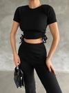 Kadın Kısa Kollu Yuvarlak Yaka Aerobin Bluz Ve Pantolon Ikili Takım - Image 1