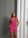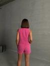 - Pembe renkli yeleğiyle dikkat çeken şort takım, yaz aylarının vazgeçilmezi olacak.