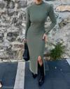 Bu şık elbiseyi yaz davetlerinde, özel günlerde veya günlük hayatta tercih ederek tarzınızı konuşturabilirsiniz. Gardırobunuzun vazgeçilmezi olmaya aday Yırtmaçlı kalın bürümcük uzun elbise Yeşil, sizleri bekliyor.