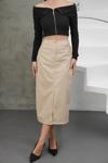 Şıklık ve tarzınızı ön plana çıkarmak istiyorsanız, Bej Yırtmaçlı Uzun Deri Eteği hemen sepetinize ekleyin!