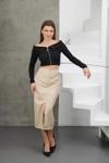 Şıklığı ve rahatlığı bir arada sunan Bej Yırtmaçlı Uzun Deri Etek, gardırobun vazgeçilmezi olmaya aday!