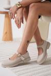 Morotonom 303 Bej Süet Toka Aksesuarlı Günlük Kadın Babet