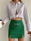 Biçomi Çift yırtmaçlı atlas şort etek petrol yeşili s240364
