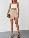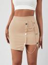 Kadınların yaz aylarında şık ve rahat bir tercihi olan zincirli mini şortlu etek, şıklık ve konforu bir arada sunuyor.