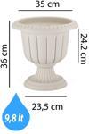 9.8 Litre Ø35X36cm Ayaklı Mat Kırık Beyaz Dekoratif Plastik Saksı No1