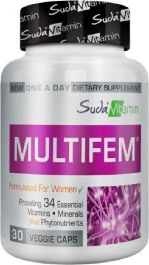 Multifem Women’s Multivitamin: kadınların ihtiyacına özel olarak formüle edilmiş vitamin, mineral ve ilave bileşenler içeren takviye edici gıdadır. 34 farklı bileşen içerir. Dünyanın en büyük vitamin ham maddesi üreticilerinden biri olan DSM® markalı ham madde kullanılmaktadır.