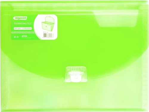 Bigpoint Körüklü Dosya 13 Cepli Kilitli A4 Yeşil
