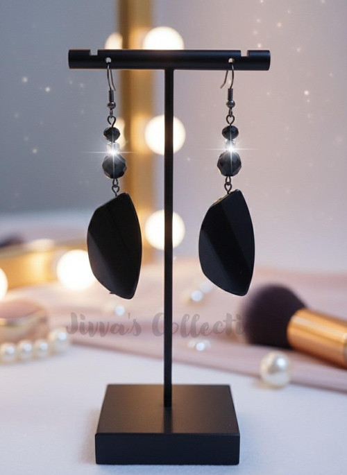 - Şık ve zarif tasarımıyla her kıyafetinize uyum sağlayacak siyah kristal sallantılı küpe.