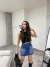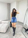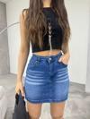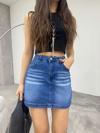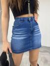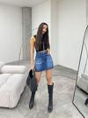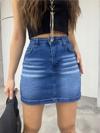 Eskitme soluk efektli tasarımı ile vintage ve retro tarzını yansıtan yüksek bel mini denim etek, günlük kullanım için idealdir.