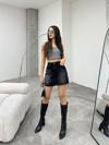 Eskitme soluk efektli tasarımı ile vintage ve retro tarzını yansıtan yüksek bel mini denim etek, günlük kullanım için idealdir.