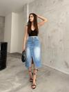 Modelin Ölçüleri: Boy: 1.77 Göğüs: 80 Bel: 65 Kalça: 88 ; Mankenin üzerindeki ürün S/36 bedendir. ; %98 koton %2 elestan ; Boyu: 70 cm ,Yırtmaç uzunluğu 25 cm dir. ; Yıkamada ürünü bozmamak için 30 C'yi aşmayınız. ; Giysileri kuruturken direkt güneş ışığına maruz bırakmayınız. ; Ürünü yıkarken yıkama talimatına uygun olarak yıkayınız. ; Renkli ürünlerde uygun deterjan kullanınız. ; Stüdyo Çekimlerinde Renkler Işık Farklılığından Dolayı Değişiklik Gösterebilir. ;