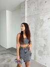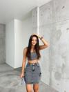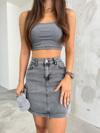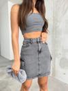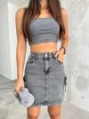 Genç ve tüm yaş gruplarına hitap eden, renkli desenleriyle dikkat çeken yüksek bel mini denim etek.