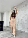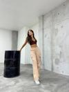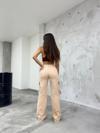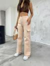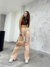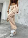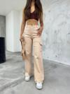 Rahat kesimi ve geniş paça tasarımı ile günlük kullanım için ideal, krem rengi yüksek bel kargo pantolon.