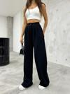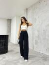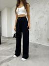 Bikelife Kadın Siyah Likralı Palazzo Salaş Geniş Paça Pantolon Siyah 2XL