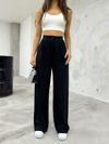 Kadın Siyah Likralı Palazzo Salaş Geniş Paça Pantolon Siyah 2XL