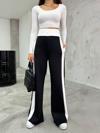 Rahat kesimi ve geniş paça tasarımı ile günlük kullanım için ideal, şık ve konforlu bir seçenek sunar.