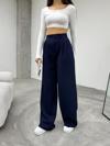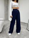 Bikelife Kadın Yüksek Bel Cırt Kapama Palazzo Kumaş Pantolon Lacivert 42