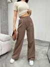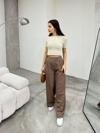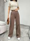 Bikelife Kadın Yüksek Bel Cırt Kapama Palazzo Kumaş Pantolon Vizon 40