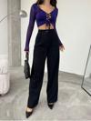 - Wide leg silueti sayesinde geniş paça kesimiyle trend bir görünüm sağlar.