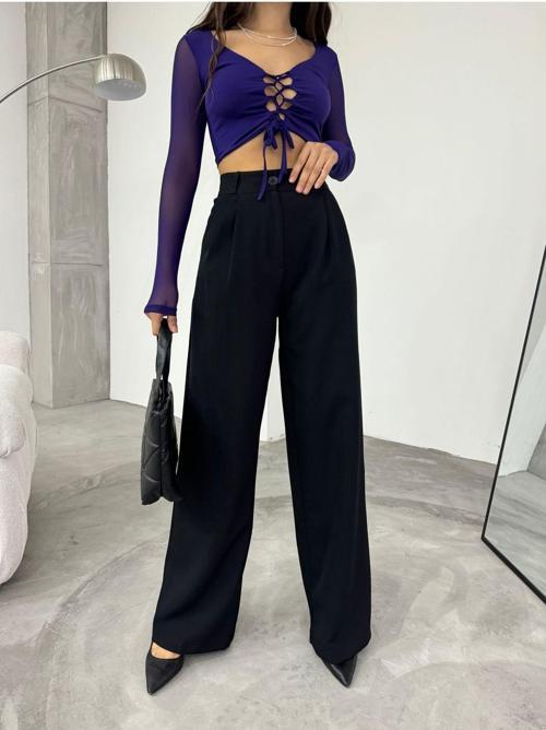 - Wide leg silueti sayesinde geniş paça kesimiyle trend bir görünüm sağlar.