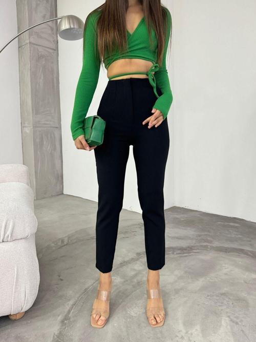 Bikelife Kadın Yüksek Bel Pensli Dar Paça Kumaş Pantolon Siyah 36