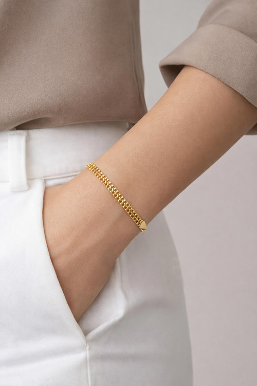 Yüksek kalitede en son teknoloji ile örülen zincir bileklikler, şıklığı ve kullanışlılığıyla günümüzün vazgeçilmezlerindendir. Balıksırtı, burma, viyana örme, italyan ezme, spike, bismak gibi zincir bileklik modelleri en çok tercih edilen modellerdir. Zincir altın bileklikler standart boyda üretilmekte olup, bilekte bütün bir görüntü sağlamaktadır. Zincir altın bileklik fiyatlarımız altın kuruna göre anlık olarak güncellenmektedir. Zincir altın bileklik sizlere Bilezikci sertifikasıyla, özel ürün kutusunda, hediye paketinde gönderilmektedir. Zincir altın bileklikler özellikle gündelik kullanımda çok fazla tercih edilmekte, fiyatının uygunluğuylada dikkat çekmektedir. Bu şık mücevher 14 ayar altından imal edilmiştir. Ürün orijinal sertifikasıyla birlikte gönderilmektedir. Ürün faturası e-fatura olarak gönderilmektedir. Bu mücevher günlük kullanıma uygundur. Takılarımız özel mücevher kutusunda hediye paketinde gönderilmektedir. Ürün size teslim edilene kadar Bilezikci sorumluluğu ve güvencesi altındadır, kargolarımız sigortalıdır. Ürün altın kaplama değildir, Bilezikci fiziki ve online olarak hizmet veren bir Kuyumcu firmasıdır.Ayar: 14 AyarAğırlık: 1,30 gr.Cinsiyet: UnisexYaş Grubu: YetişkinAyar: 14 AyarTaş Cinsi: TaşsızRenk: SarıMaden: AltınTip: GünlükYüzey Tipi: ParlakBileklik Boy: 19 cm İdefix sistemi ürün gramajlarını güncellememektedir. Bundan dolayı gramajlarda % 5 e varan gram farklılıkları olabilmektedir. Net ürün gram bilgisini öğrenmek için mesaj yazabilirsiniz. Güncel ve net gramaj bilgisi, ürünle birlikte gönderilen mücevher sertifikasında yer almaktadır.