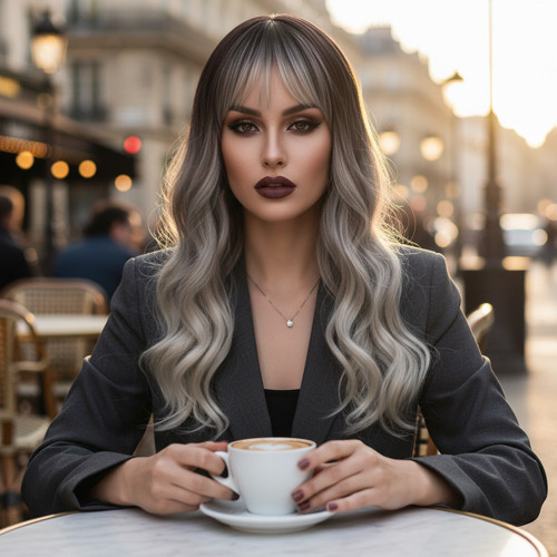 Dalgalı Kısa Perçemli Fiber Sentetik Peruk / Ombre Ve Röfleli