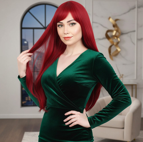 Fiber Sentetik Uzun Düz Kahküllü Peruk - Kızıl