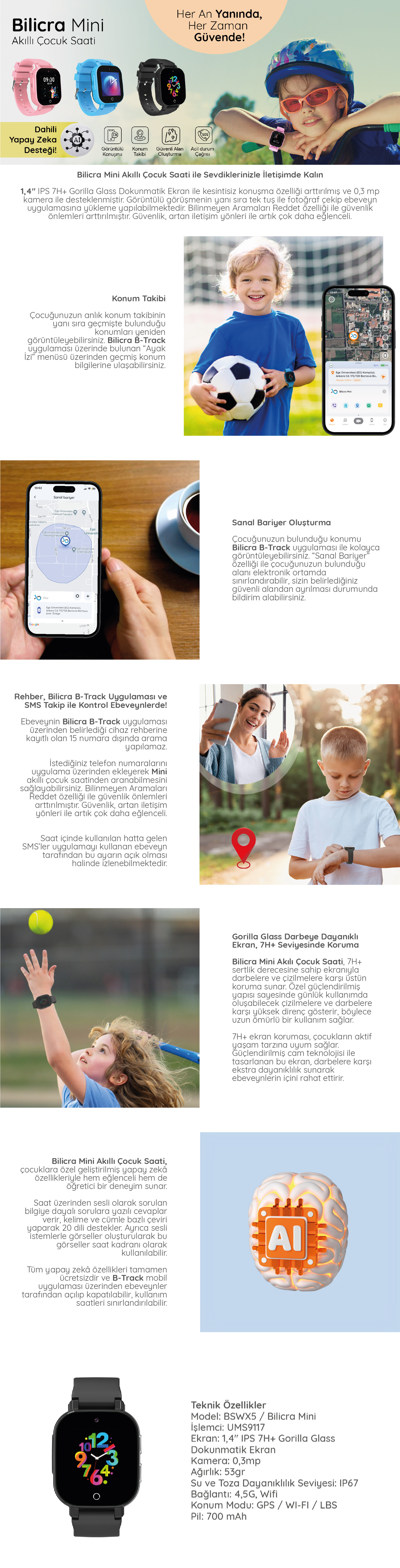 Bilicra Mini Akıllı Çocuk Saati - Mavi