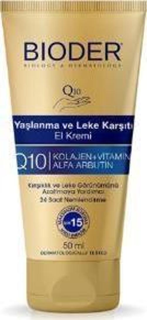 Bioder Yaşlanma ve Leke Karşıtı El Kremi, içeriğindeki Alfa Arbutin, Koenzim Q10, Kolajen sayesinde ellerinizi sıkılaştırır ve lekeleri gidermeye yardımcı olur. C Vitamini, canlı ve parlak bir görünüm sağlar. SPF 15 ile foto yaşlanmaya karşı korur. Elleri nemlendirir ve kuruluğu giderir. Hafif ve hoş bir kokusu vardır. Elde yağlı bir his bırakmaz. Hızlı emilir. Alkol içermez.