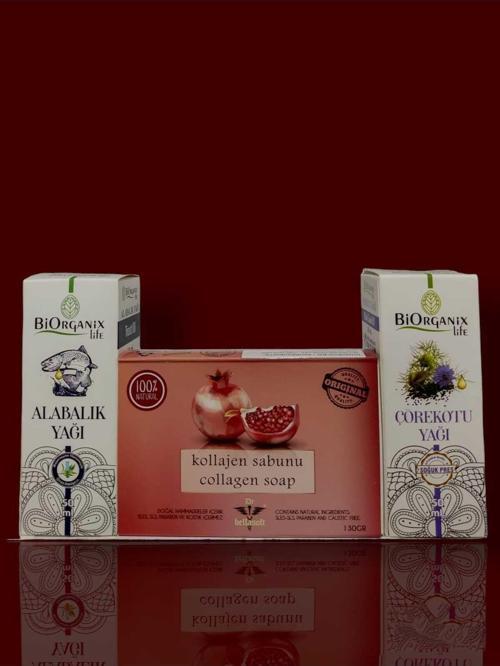 Alabalık yağı + kolajen sabun + çörek otu yağı