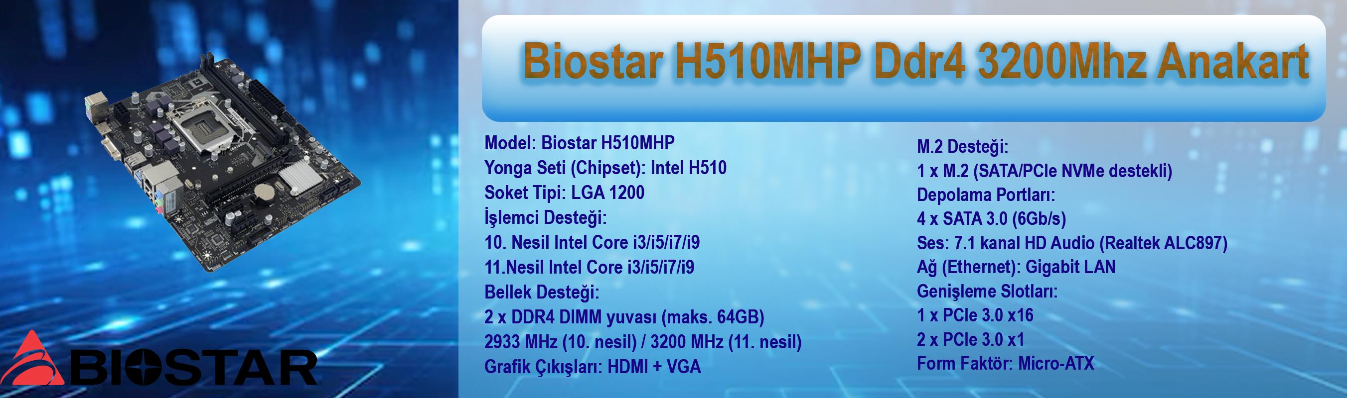 Biostar H510MHP Ddr4 3200Mhz M2 Hdmı Vga Ses Ethernet 10.11.Nesil 1200 Pin Anakart