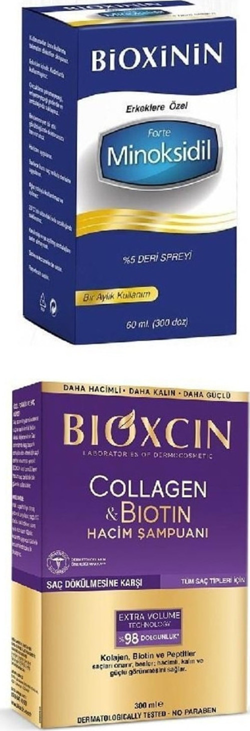 Bioxinin Forte Minoksidil %5 Deri Spreyi 60 Ml + Bioxcin Collagen & Biotin Hacim Şampuanı 300 Ml