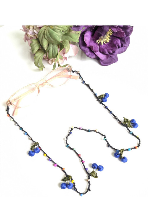 Bircan Hediyelik Kiraz Tığ Oyası Cam Boncuklu Parlament Mavisi Gözlük İpi