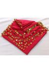 Pullu Tığ Oyası, Kırmızı Namaz Bezi Baş Örtüsü Eşarp, Pamuk - Polyester Karışımı, Terletmez renk vermez kırışmaz %100 el işçiliği, Evladiyelik, Makine işi değildir.