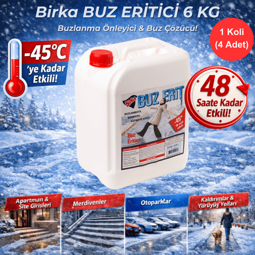 Birka Buz Eritici 6 Kg – Buzlanma Önleyici ve Buz Çözücü, -45°C, Magnezyum Klorürlü x 4 Adet