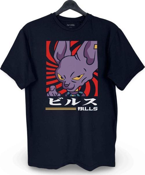 nirvoda Birusu Beerus Dragon Ball Baskılı Loose Fit Bisiklet Yaka Unisex Siyah Tişört Anime Manga